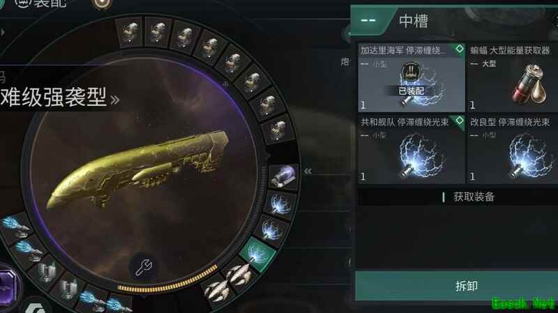 若目标为稳定捕获敌舰,中槽需至少加装一个反跃迁装置;若要在深空拦截目标,则至少配备一个红扫模块;若计划单人封锁星门,中槽应装备一张减速网,以防目标利用脉冲推进逃离星门区域。