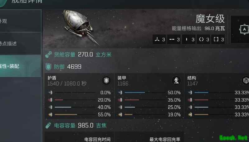 显然,这是一艘射程达100公里的远程狙击舰,低槽配置4个武器和2个索敌装置,中槽装有3个减速网和1个干扰器。