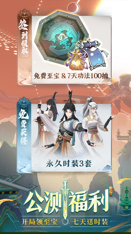 御剑纵横,即时斗法|《问剑长生》是雷霆全新3D御剑放置修仙手游。在这里,你可以体验沉浸式3D御剑空战斗法,参与超过百人的空中斗法;施展真灵血脉、召唤圣兽法相,统御威名赫赫的灵兽和法宝……