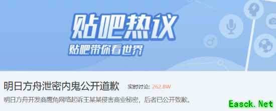 随后#明日方舟泄密内鬼公开道歉#的话题登上贴吧热议话题榜,引发网友讨论。