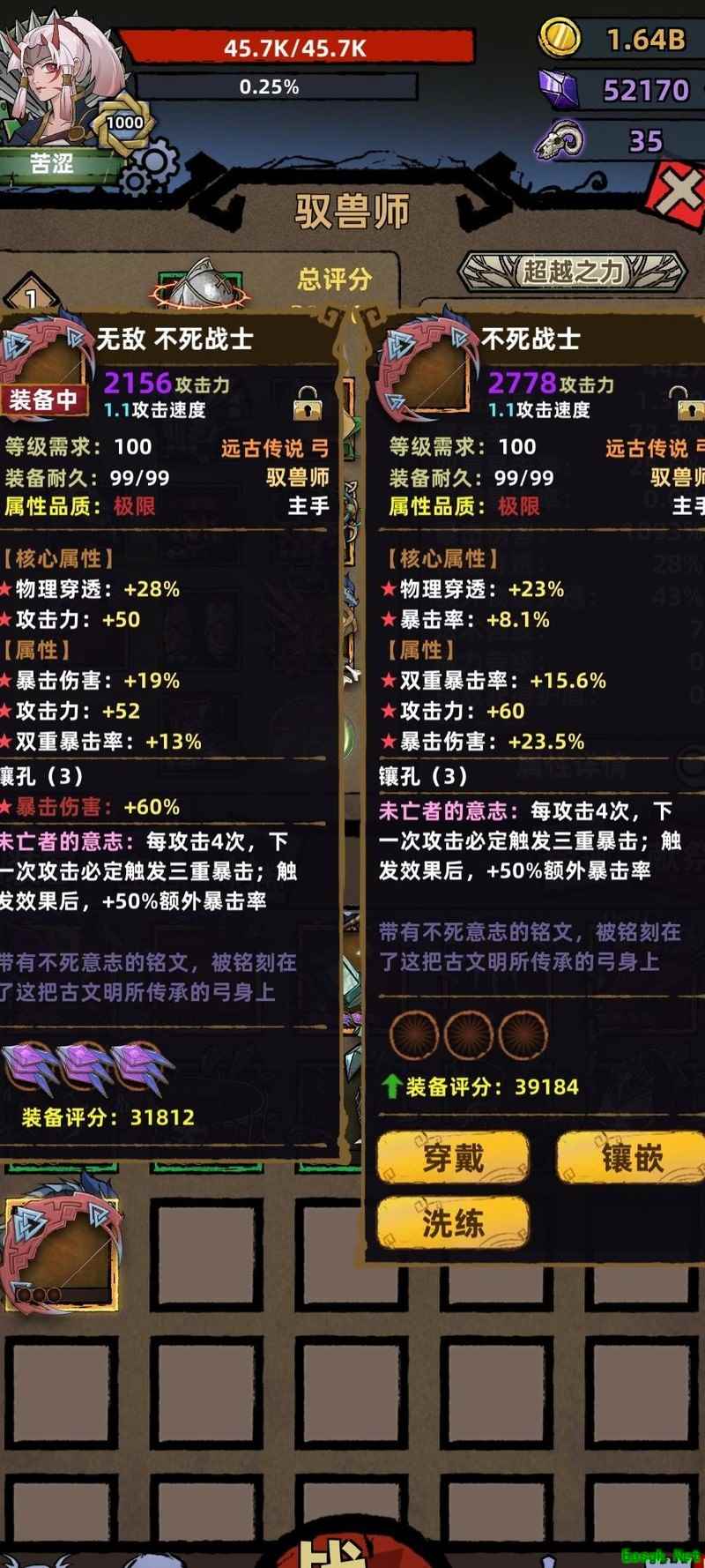 左边是自己刷的,右边是神秘商店购买的,其他武器相同,属性却明显高出一截。