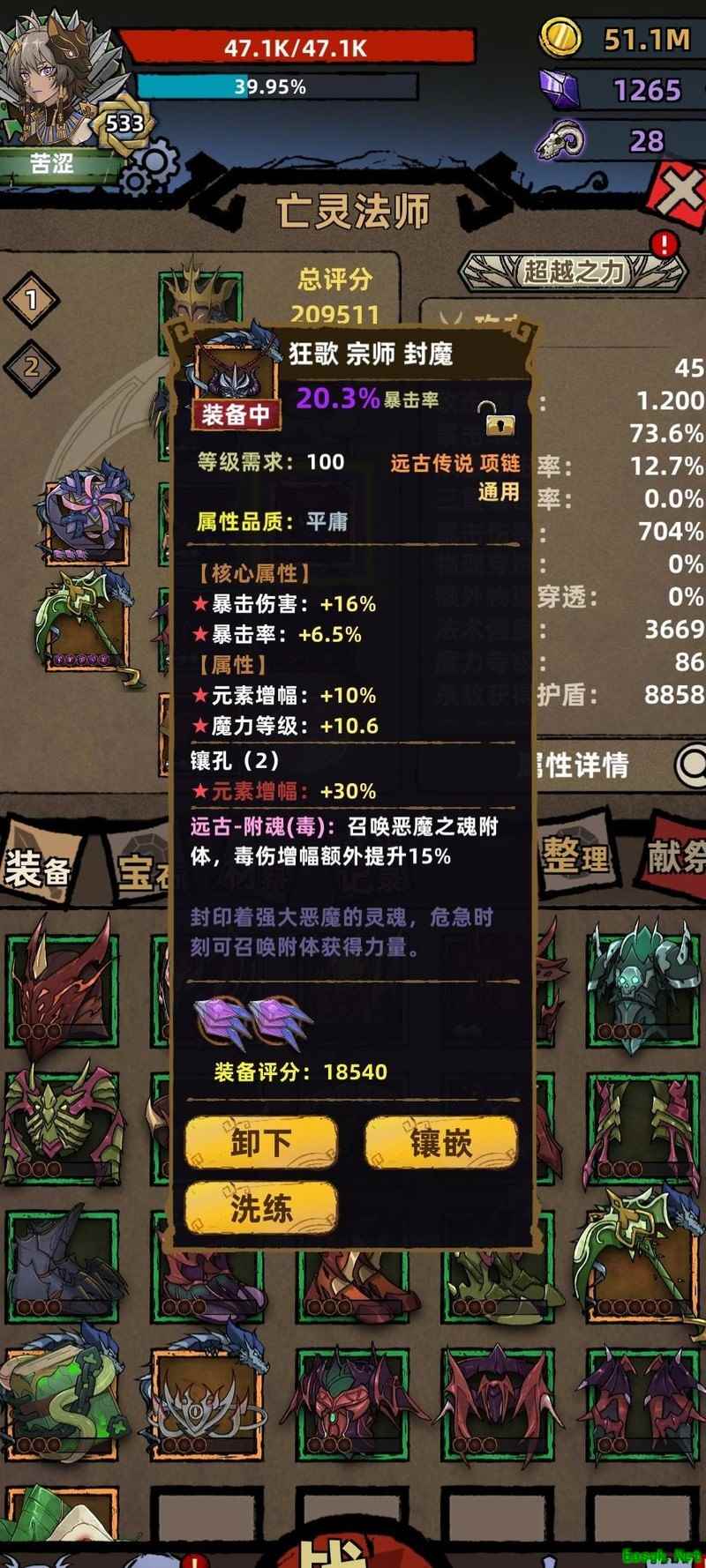 首饰搭配:戒指选奥能技艺,项链选封魔(毒)。