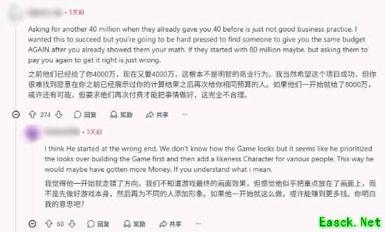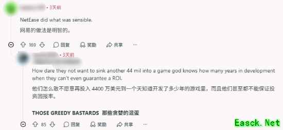 这一系列事件在海外Reddit平台也引发了网友热议,其中相当多的玩家的态度都偏向于支持网易,并指出名越工作室的项目管理确实存在问题,成本开支过于巨大: