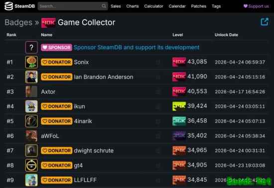 据悉,Steam收集榜以玩家账号内游戏数量为核心排名依据,“sonix”的收藏量远超榜单其他参与者,涵盖各类题材、各个年代的作品,被玩家称为“行走的游戏库”。值得一提的是,“sonix”来自中国上海,注册Steam已超15年,账号等级颇高,是公认的“Steam传奇收藏家”。早在2025年9月,他就率先突破4万款游戏收藏大关,成为全球唯一获得“Game Collector: 40,000+”徽章的玩家。目前其游戏库仍在持续扩张,实际包含近10万项产品(含DLC、 shovelware等),而该徽章仅统计高质量付费游戏,玩家称其为“行走的游戏库”。