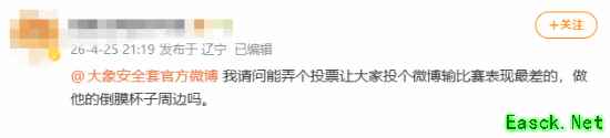 赛后WBG的粉丝既生气又无奈,喊话WBG赞助商@大象安全套:我请问能弄个投票让大家投个微博输比赛表现最差的,做他的xx周边吗。
