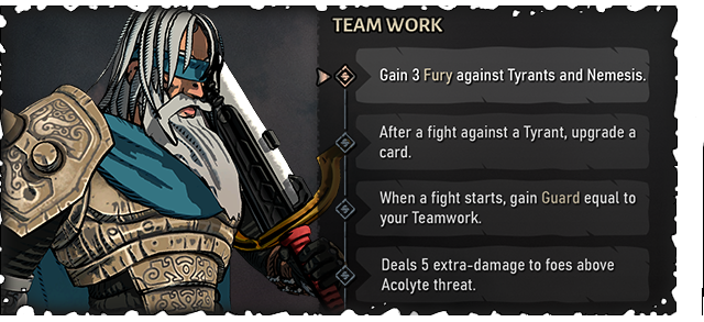 每当你深入奥雷萨时,都要选择另一名英雄与你同行。作为队友,每个英雄都能提供8种独特的能力。在数十种可能的双人组合下,你可以充分体现个人风格,或是尝试看起来难以使用的组合。你是想要对抗Boss战的专家,还是想要能升级你的卡牌的前卫铁匠?