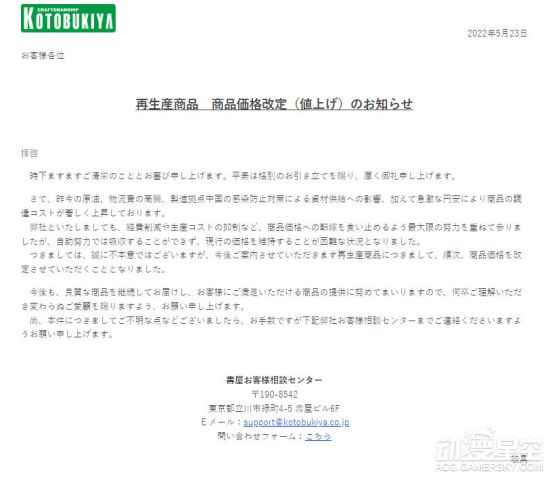 真挺不住了 寿屋宣布再版周边商品售价上涨