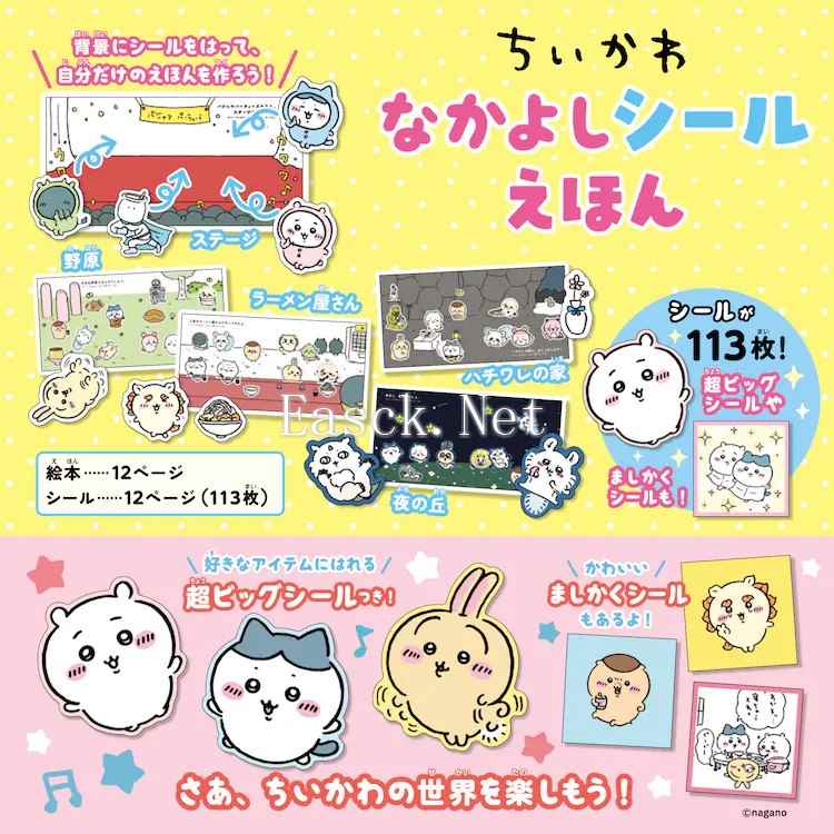名古屋「ちいかわ」系列的贴纸绘本《ちいかわ なかよしシールえほん》将于12月2日发售。这本绘本允许用户通过贴上113张贴纸来完成属于自己的绘本,包括大型贴纸和格子贴纸等多种样式的贴纸。由于使用了可重复粘贴的纸张,因此可以多次玩耍。价格为含税1650日元。这本贴纸绘本不仅适合「ちいかわ」系列的粉丝,也适合儿童和绘本爱好者享受其中的乐趣。 |
