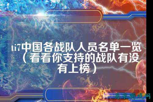 TI7中国各战队人员名单一览(看看你支持的战队有没有上榜) 2017年8月2日,TI7中国区预选赛正式开始。各大战队为了争夺进入国际赛场的机会,派出了他们最强的阵容。以下是各战队人员名单一览,看看你支持的战队有没有上榜吧!