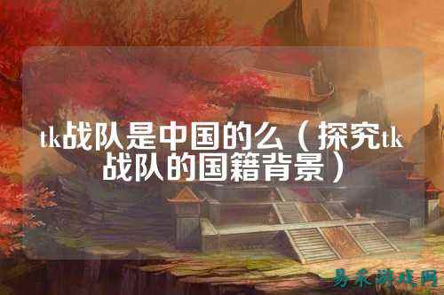 答:TK战队是一支电竞战队,成立于2016年,主要参加国际性的电竞比赛。其国籍背景并不是中国,而是来自欧洲的比利时。 据了解,tk战队成立之初,由比利时的一位电竞爱好者创建,选手阵容也来自比利时和法国两个国家。目前,tk战队主要参加的比赛是欧洲区的比赛,如欧洲大师赛和欧洲电竞联赛等。虽然tk战队没有中国国籍,但它的实力和成绩备受关注。在2019年的欧洲大师赛中,tk战队表现出色,最终获得了冠军的好成绩。