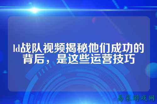 ld战队视频揭秘他们成功的背后,是这些运营技巧