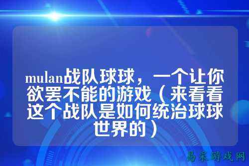 mulan战队球球,一个让你欲罢不能的游戏(来看看这个战队是如何统治球球世界的)