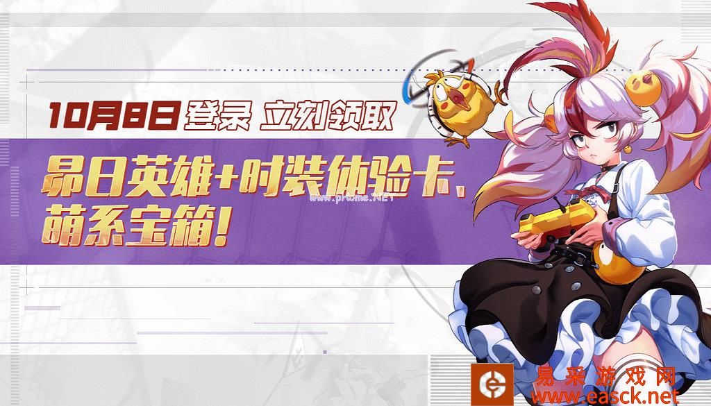 时间 活动时间:10月8日 04:00 ~ 10月9日 04:00 内容 节后第一天,上线就送昴日英雄+时装体验卡、萌萌哒小礼包(打开可获得香水*1,金砖*20)。一定记得登录哦~ |