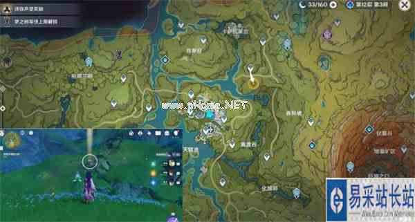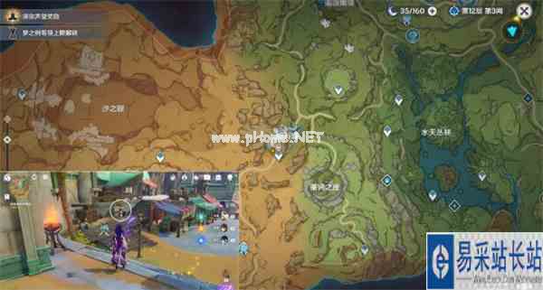 3、我们传送喀万驿往地图西北方向走,在公告牌前面和赛诺进行对话,然后我们在往地图西南方向走,前往任务指引位置。
