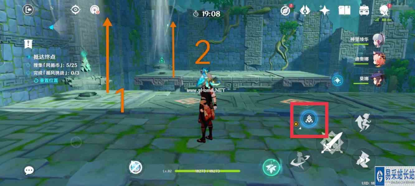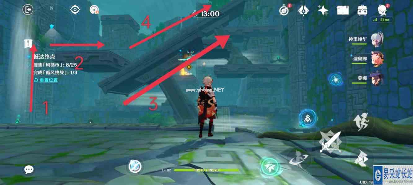 原神徇察五风第四关厉风之境怎么获得全奖励呢?下面给大家带来的是原神徇察五风第四关厉风之境全奖励攻略,一起来看一看吧。 原神徇察五风第四关厉风之境全奖励攻略 关卡中,如果想要拿满奖励,需要收集散落在各处共25个「风循币」、完成共3个「循风挑战」,并到达终点。 1.首先点击图中红框中控风按钮,关闭所有风场。依次将图中的1、2处风场方向朝上并开启。再次点击控风按钮,开启所有风场。开启挑战,如图所示逆时针完成挑战。 ![]() ![]() 2.来到第二个房间,仍然首先点击控风按钮,关闭所有风场。依次将图中将1处风向向左、将2处风向向上并开启、乘坐2处风场来到3处将风向向左、回头将2处风向向左。原路返回,点击控风按钮,开启所有风场,按照如图箭头顺序,收集并完成挑战。 ![]() ![]() 3.消灭怪物,来到第三个房间。 ![]() 4.点击控风按钮,关闭所有风场。将图中1处风场向左,将2处风场向上,返回。开启挑战,到达如图位置后,再次点击控风按钮,使风场开启并使平台倾斜,如图箭头顺序,收集并完成挑战。 ![]() ![]() 5.完成挑战后,乘坐风场来到最后房间。 ![]() 6.首先点击控风按钮,关闭所有风场。向前行走,来到此处并下落到前方平台。到达平台后,点击控风按钮,开启风场,平台上升。如图箭头所示所示回头拿风循币。继续向任务点前进。 ![]() ![]() 7.完成! |