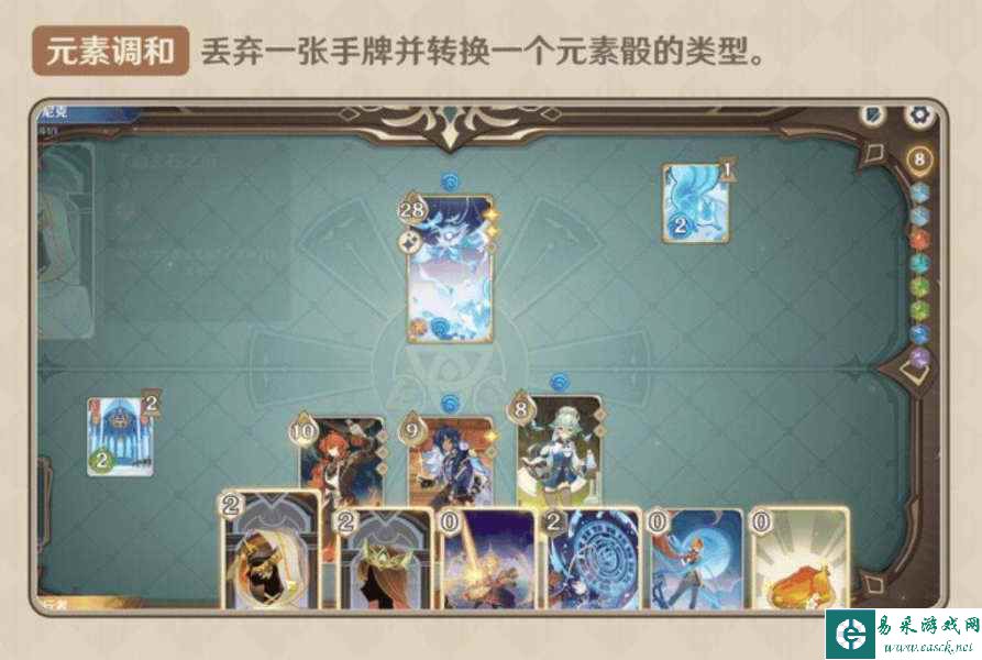 ①未知量原则 这个原则指的是能晚出的牌就不要早早的使用出去,比如璃月港,立本这种延时收益的卡,如果你早早的把骰子都打完了,对面就明白你这一回合接下来没有什么行动了,反之,对面由于未知你的手牌,同时看到你还有大量的骰子,就会产生忌惮,从而影响到他的行动。 ②反心态 利用上面谈到过的心态,故意把骰子快速打完,只留1-2个骰子,让对面认为你这回合无法再攻击了,从而放松警惕,然后反手掏出共鸣类加骰子数量的牌发动攻击,出其不意。(来骗,来偷袭!)你以为我在第一层,其实我在大气层。 1.7 元素调和