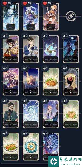①重云释放元素战技即可获取冰附魔状态,虽然条件比神里绫华略难,但重云的出场一般是t3左右,手牌给他调和一下还是很充裕的。 ②双冰强效的+2伤可以为我们解决大多数问题,提高斩杀线,非常好用。 3.2卡组构成: