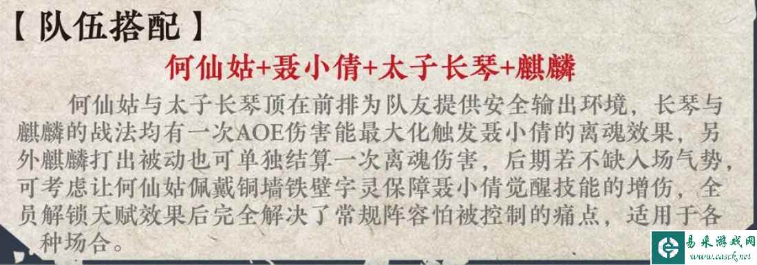 《神仙道3》聂小倩的阵容推荐