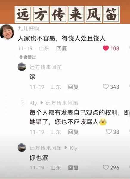 远方传来风笛梗是什么意思一、梗的意思 这句话是一个比较含蓄的怼人的方法,其含义就是“滚”的意思。 二、梗的出处 1、事情的起因是因为一个视频中的卖烧烤的坑老人的钱,有人出来当老好人劝别人得饶人处且饶人。 2、这个时候一个ID为“远方传来风笛”的网友回应了“滚”,又有一个网友过来教育说不要骂人。 3、然后远方传来风笛又回道“你也滚”。