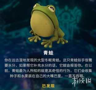 青蛙跟小飞鼠一样都要去找,青蛙不需要食物,可以直接带回家。带回家后会在家里帮你收集掉落在地上的东西。给蛙蛙附魔后会变成紫色,会收集更多。