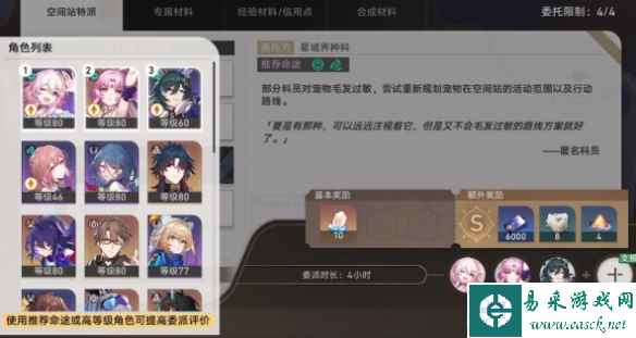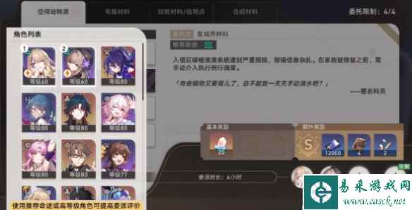 崩坏星穹铁道空间站特派需要玩家选择合适的角色即可完成任务,还有很多小伙伴不知道崩坏星穹铁道空间站特派任务怎么做,小编为大家带来了崩坏星穹铁道空间站特派任务攻略,感兴趣的小伙伴一起来看看吧。 空间站特派任务怎么做1、玩家首先进入标记的传送点,找到NPC沃森对话。 2、“非电子版文件”任务主要选择两个毁灭命途,其他随便放。 3、“液滴系统报错”任务可以选择如图角色。 4、“宠物行动路线规划”选择如图三个角色。 5、“餐饮优化方案”选择对应角色即可。 6、玩家完成任务每日可获得80个星穹。