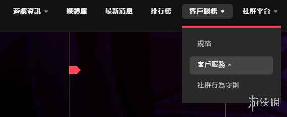 2、在无畏契约页面,点击顶部的“客服服务”,然后选择下拉菜单中的“客服服务”。