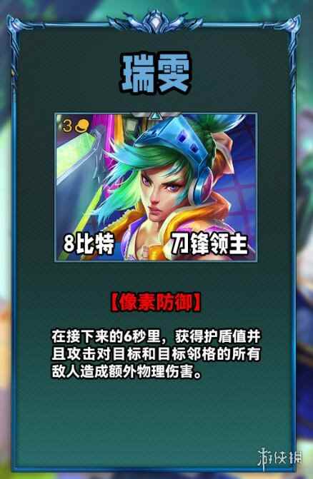 云顶之弈s10全英雄技能介绍 云顶之弈S10瑞雯技能是什么瑞雯(三费卡)技能:像素防御 技能效果: 在接下来的6秒里,获得护盾值并且攻击对目标和目标邻格的所有敌人造成额外物理伤害。 羁绊:8比特、刀锋领主