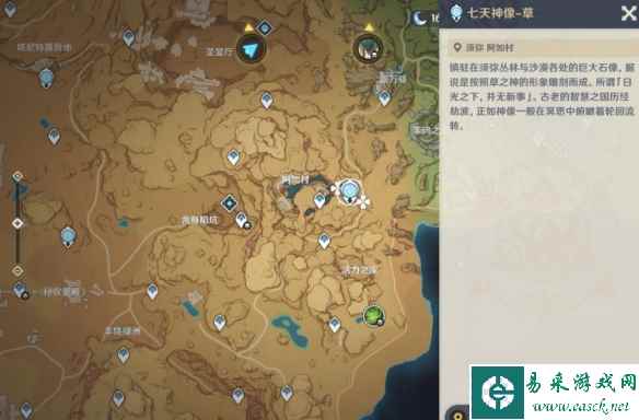 原神4.2无腿但并非游鱼类的野生生物位置1. 阿如村附近 (3个) 首先来到阿如村附近的草神像↓