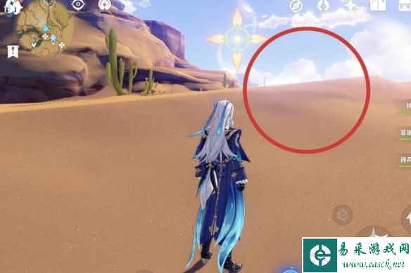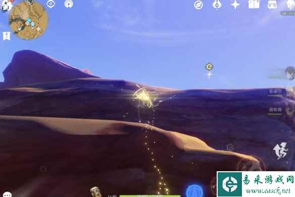 先爬一段上去然后通过两个草十字印传送到上方,不远处的地面有3只流沙鳗鳗(向左边移动一点拍照 不要走近了,鳗鳗会躲进沙子里)