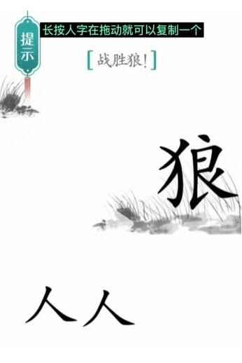 汉字魔法战胜狼怎么过1、长按人字,往边上拖,就能复制出一个人了。