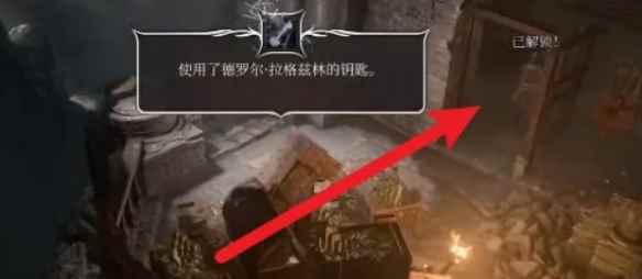 3、然后玩家用德罗尔-拉格兹林的钥匙打开二楼的铁门。 4、在铁门里玩家可以发现一个宝箱,宝箱中就有【弹力之靴】。