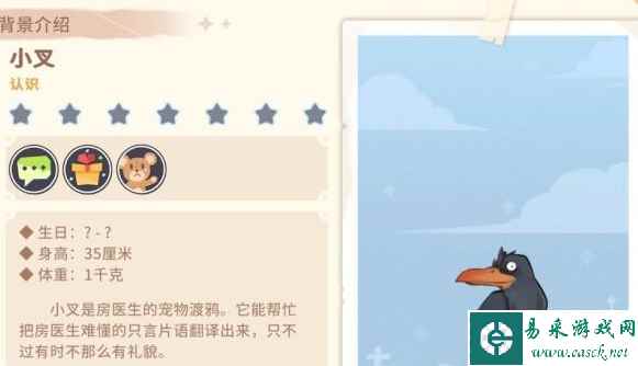 沙石镇时光小叉是一直乌鸦,喜欢凉拌苜蓿,凉拌仙人掌,水果沙拉,解毒药,止血药,跌打药,眼药水,白及解毒清,雾冰凝肤露,霹雳通脉丸,房氏小还丹,番茄土豆种子,红薯辣椒种子,黄麻哈密瓜种子。 沙石镇时光微蒂送礼攻略小叉(生日4月11日): 非常喜欢: 椰奶冻,疯狂医师药水,壮骨醒力汤,金钟护体丸,房氏大还丹,仙人掌盆栽,仙人球盆栽,大花犀牛角盆栽,龙舌兰盆栽,不死草,龙血竭,紫宝石,猫眼石,玫瑰石,黄金。 钻石,蝎王,沙蛇王,角腹王。 喜欢: 凉拌苜蓿,凉拌仙人掌,水果沙拉,解毒药,止血药,跌打药,眼药水,白及解毒清,雾冰凝肤露,霹雳通脉丸,房氏小还丹,番茄土豆种子,红薯辣椒种子,黄麻哈密瓜种子。 沙枣花,苜蓿,山地玫瑰,苦豆子,黄宝石,刚玉,青金石,蓝宝石,琥珀,萤石,发光的蝎子,蝎子,大沙蛇,大角蝮蛇,沙蛇,小鸟秋千,水。 不喜欢: 青铜剑盾,铁质剑盾,老式手枪,老式突击步枪,石匕首,石枪,石制大剑,激励大锤,青铜枪,铁枪,石制剑盾,青铜匕首,铁质匕首,青铜大剑,铁质大剑,手枪子弹。 步枪子弹,骨质项链,狼牙挂坠,骨质扳指,皮手套,腰包,牛角梳,牛角手环,牛皮沙发,兽皮地毯,粗皮革,破旧餐桌,破旧熔炉,破旧发动机,破旧轮胎,生皮,粗皮。 驼牛角,完整皮,麂皮,狼牙,鹰翅骨,碎皮,石废料,铜废料,木废料,铁废料,橡胶废料,塑料废料,精细木废料,机械废料,简单皮革,鞣制皮革,硬化皮革,麂皮绒。 讨厌: 火药,废渣,火硝,精疲力尽的健身器材,屏幕坏掉的电视,被遗弃的玩偶,有点历史的柏油路碎块,烧焦的茶几,破洞牛仔裤,带有图案的石头,粘液,蛇的唾液,毒液,蛇牙,蜥蜴牙。 织物废料,废纸,破瓶子,破布,屎壳郎虫卵,有机残渣,不明药物,塑料,塑料壳,漂白剂,硬化剂,固化剂,塑化剂。
