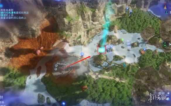 7、交谈完毕之后玩家打开地图,可以看到目标地点已经变更为了薄纱湖区域闪光瀑布的附近。