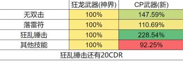 3、无双击技能攻击力+60%,范围+20%。 4、相比较而言其余技能可能伤害略有削减,不过中体来说要比狂龙武器好。