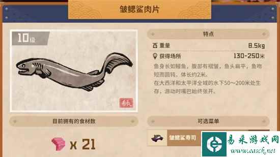3、前期我们没有无人机的时候,只能将其杀死然后手剥肉片。 4、等有了无人机之后,我们就可以用睡眠类的武器先将其眩晕,然后再用无人机将他运走,这样鱼类的星级会很高。