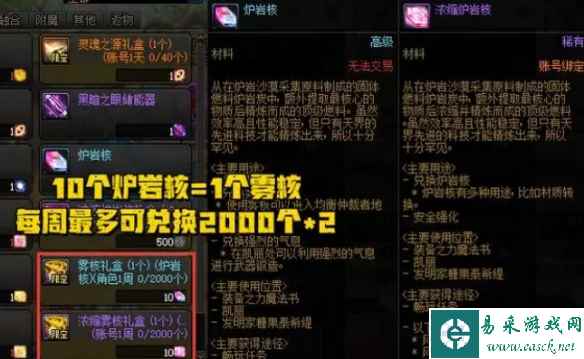 3、账号绑定的道具可以给同大区的其他角色使用。 4、在神界版本中,炉岩核可以兑换雾核,雾核是神界深渊门票,入场一次需要36个雾核,也就是360个炉岩核。