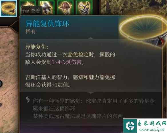 博德之门3游戏中的异能复仇饰环是一件稀有装备,这件装备玩家可以在伊雷珂养育间获得,玩家在伊雷珂养育间审判官的房间击杀审判官瓦尔戈兹即可获得这件装备。