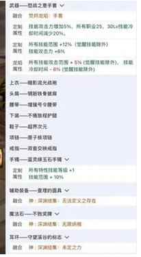 二、首饰介绍: 1、蓝灵手镯(仅需具备“TP+1范围10%”属性即可) 2、原子核项链(提速25%技能冷却) 3、双音戒指(加速30%技能冷却) 三、特殊装备介绍: 1、查理的面具左槽(大幅削减50%技能冷却) 2、守望溪谷的标志耳环(提升15%范围大小) 3、不败奖牌右槽(提供额外防御力) 四、武器介绍: 1、选择狂龙武器(扩大24%攻击范围)。 2、武器贴膜词条选择“范围12%、25/30技能CD-20”。