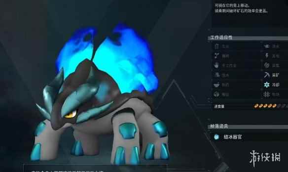 神兽名:寒霜兽 工作适应性:采矿3级,冷却3级 掉落物品:结冰器官 帕鲁伙伴技能: 贪食冰霜之兽:可骑在它的背上移动。骑乘期问破坏矿石的效率会更高。 推荐攻略:空涡龙捕捉位置介绍