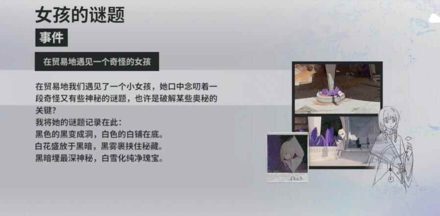 《来自星尘》迷之少女解谜攻略:1、玩家在第二章可以遇到一个迷之少女。