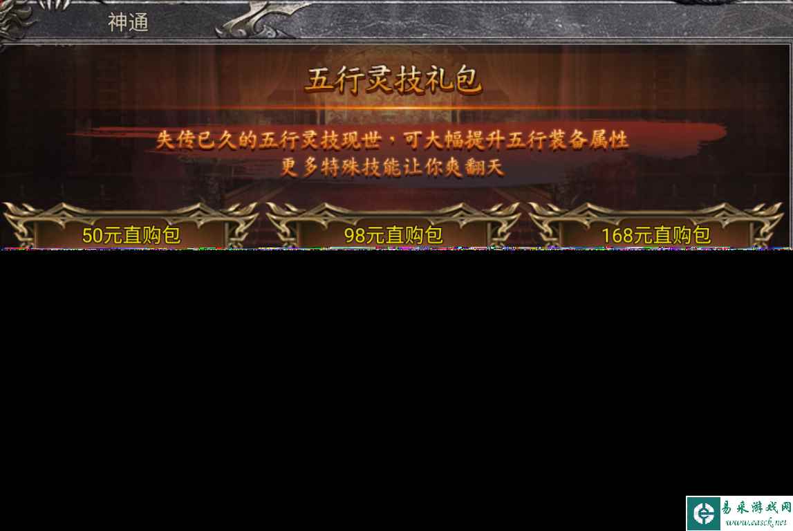 【五行灵技】 购买五行灵技礼包(灵技·噬魂、灵技·夺魂、灵技·天尽)可提升所有五行装备元素属性! 更多内容,敬请关注《齐天大战神》论坛~ |