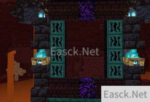 最后使用打火石,在黑曜石中间点一下,就出现传送门的紫色图案啦。