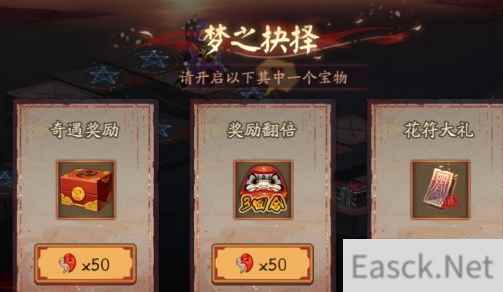 「梦之抉择」:花费50勾玉,从奇遇奖励/后续3回合奖励翻倍/花符大礼当中三选一,建议购买花符大礼,配合连续3次投出相同步数时的额外奖励,以及镰鼬的行动机制,定向花符在本次活动中能为大人们带来更高的收益。勾玉资源紧缺的大人也可以选择跳过该事件。