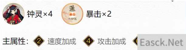 推荐理由: 1、鬼童丸门槛高,搭配针女需要速度快速堆叠,有概率对目标造成生命上限,无视防御伤害; 2、搭配针女就是利用修罗骸锁这个技能秒对面的输出,常规搭配,但是不适合高端局。 方案二: 钟灵*4,暴击*2