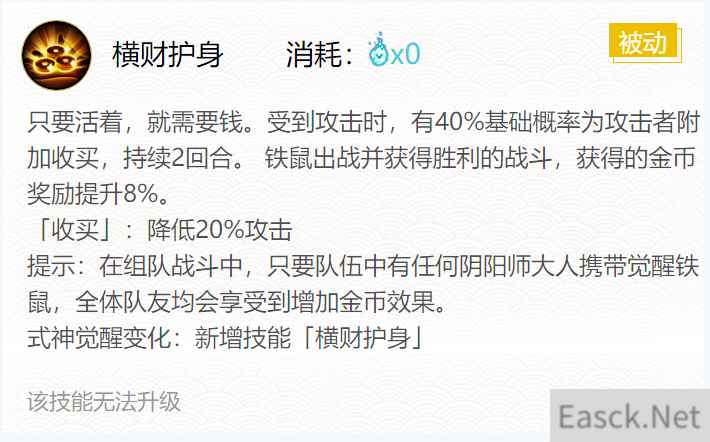 技能二:横财护身(0火)