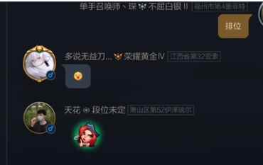 3、在成功修改称号以后,来到世界频道聊天后,就会在段位之后显示出你已经佩戴的称号,如下图所示。