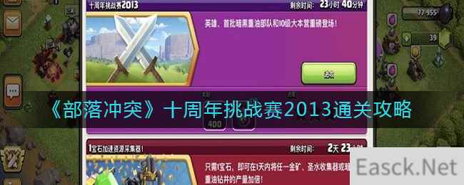 《部落冲突》游戏中十周年挑战赛新活动已经开启了,此次十周年挑战赛将带玩家回到部落冲突八本时代,难度并不高,那么今天小编就给大家介绍一下部落冲突十周年挑战赛2013通关攻略,有需要的小伙伴不要错过了。