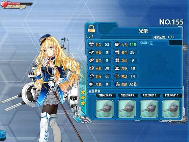 这次为大家带来的是《战舰少女r》中光荣的舰船评测。偶像打扮的华丽小姐姐,这么华丽的立绘却给了个蠢萌的性格设定,这么弄就又出现了反差萌这个属性。这位妹子的大破是“真·大破”,只剩内衣了,还是很瑟情的情趣内衣,有需要的提督请自行百度。 光荣 “有我在的海域绝不会让敌舰践踏!大概……”