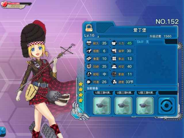 这次为大家带来的是《战舰少女r》中爱丁堡的舰船评测。格子裙,高帽子,浓浓的苏格兰风格,这个妹子在游戏中的性格设定却是逗比,帅不过三秒的那种,不过这种性格是很讨人喜欢的。游戏中实用度不高,金块船,但是稀有度较高,可以拿来晒别人一脸。 爱丁堡 “无论火力和装甲,我都是超一流的!(仅限轻巡)”