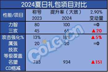 不难发现,今年的夏日礼包的过渡性能比起往年有了一个不错的提升,主要是因为宠物合格了,而且宠物装备今年一套会给2个,保底强度有了一个很大的提高。但整体来看和一线拉满的顶级细节比仍然存在不小的差距。 相对其他细节而言,中间过渡的提升量也会小一些。其他细节拉满的玩家今年的提升在2.47%左右,如果是补上了去年没有购买的纹章,提升为3.7%左右。 结语 夏日礼包的游戏道具的价值主要集中在了宠物装备上,还有就是便于去年没有补10攻强纹章的玩家进行细节的补充。其他的道具的使用寿命都较短,偏过渡向。光环会在3个月后被国庆光环替代,宠物在6个月后会被新的年宠所替代。角色需求不大的玩家没有购买太多套的必要。整体是偏过渡向的礼包,但是安插了少量顶级价值的道具为礼包保值。 至于其他道具,比如时装是否好看,开礼盒抽奖摸13强化券等方面的考虑,就看每个人自己的意向了。 最后也希望广大的玩家合理消费,结合好自己的实际需求分配预算。 |